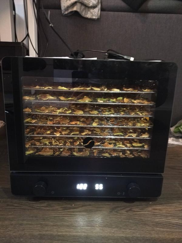 Parin viikon kokemuksen perusteella tämä kasvikuivuri kykenee kuivaamaan todella hyvin omenoita ja yrttejä. Lämpötilan ja ajan pystyy todella helposti säätämään nupeista myöskin kesken kuivauksen, joten kuivuria on todella miellyttävä käyttää.