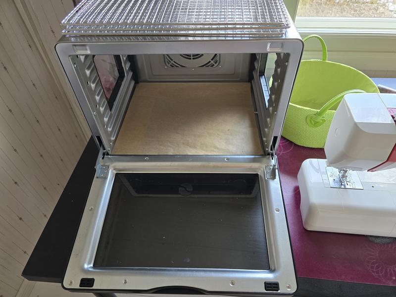 Hiljainen, lämpötila säädin toimi hyvin ja ajastin myös, kone sammuu kun aika on täynnä. 8 ritilä mihin mahtuu paljoa tavaraa.