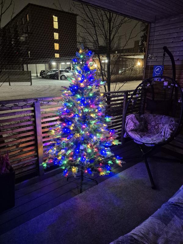 Hyvännäköinen ja sopivan kokoinen suht pieneen tilaan. Vaalea valo oli kirkkaampi kuin olisin ehkä toivonut, omaan silmään hämärämpi valo kuusessa olisi riittänyt. Värikkäät valot meillä enemmän käytössä - ovat hauskan näköiset, mutta kirkkauden takia koristeet "katoaa" kuuseen helposti. Helppo asentaa ja kuusesta saa helposti tuuhean näköisen.