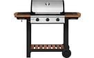 Näyttävä ja tukeva 3 valurautapolttimella varustettu kaasugrilli 10,5 kW kokonaisteholla ja näyttävillä puuosilla. Grillausala 63 x 41 cm, joka on jaettu mattaemaloidun grillausritilän 31 x 41 cm ja mattaemaloidun parilan 31 x 41 cm kesken.