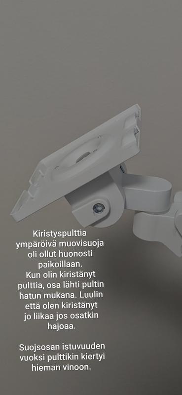 Kokeilimme saako VESA-nivelen/kippausnivelen nyt pysymään jossain staattisessa asennossa, kun pulttikin kiristyi suoraan.