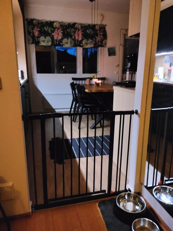Uuden koiran tulon myötä tarvitsimme uuden koiraportin. Katseltuani eri vaihtoehtoja, löysin tämän todella hienon portin. Kiva kun vaihtoehtona musta väri, joka sopii hyvin sisustukseen. Portti oli helppo asentaa ja toimii erittäin hyvin. Plussaa itsestään sulkeutumisesta.
