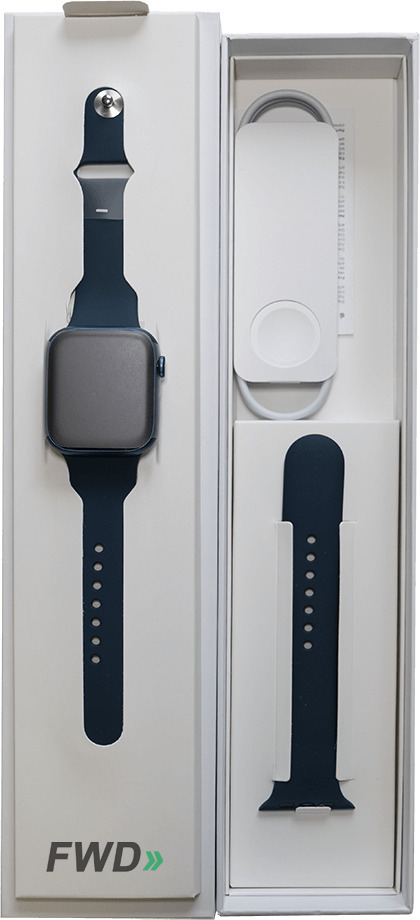 Käytetty Apple Watch Series 7 (GPS) 45 mm -käytetty älykello, sininen alumiinikuori ja sininen urheiluranneke (4KN83B/A)