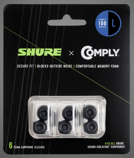 Shure Replacement Comply -musta korvasovite, 3 paria (Large)