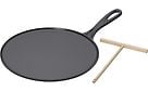 Le Creusetin laadukas 27 cm valurauta kreppipannu. Paketissa mukana myös kreppilasta.