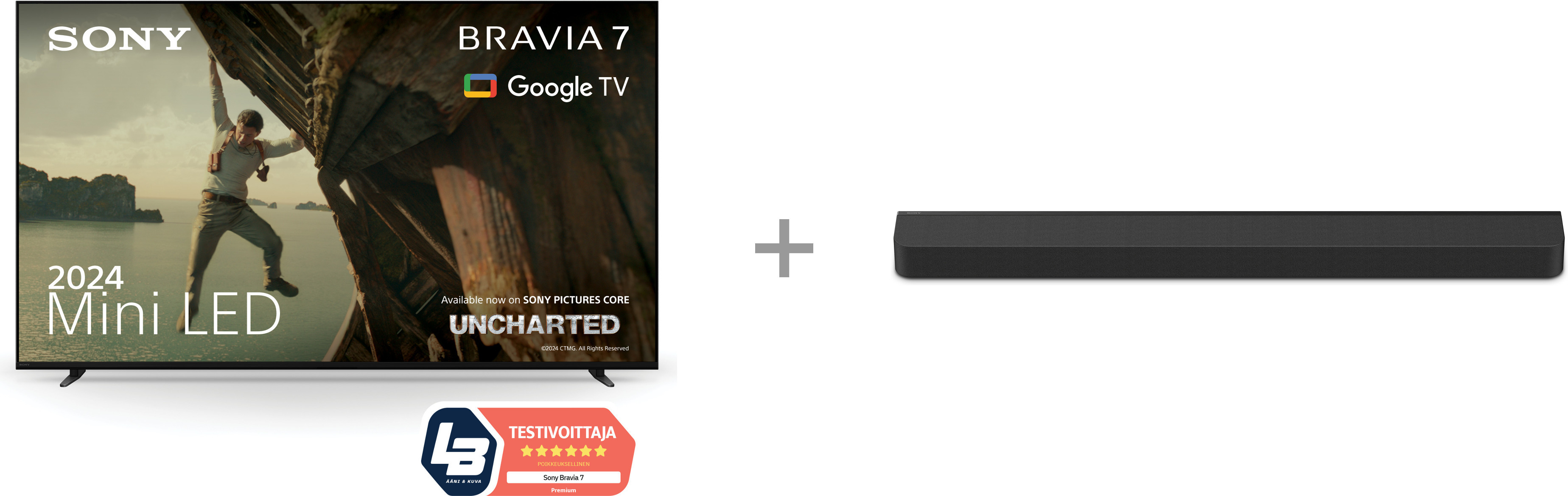 Sony 65" Bravia 7 – 4K QD Mini-LED Google TV + Bravia Theatre Bar 8 – 5.0.2 Dolby Atmos Soundbar -tuotepaketti