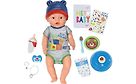 43cm BABY Born Jonas -vauvanukke, joka sulkee silmänsä taianomaisesti tuttia suussa pyörittämällä. Nukkea voi kylvettää, juottaa ja se itkee oikeita kyyneleitä.