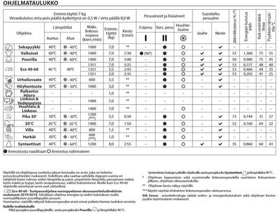 Kuvassa on pesuohjelmat.