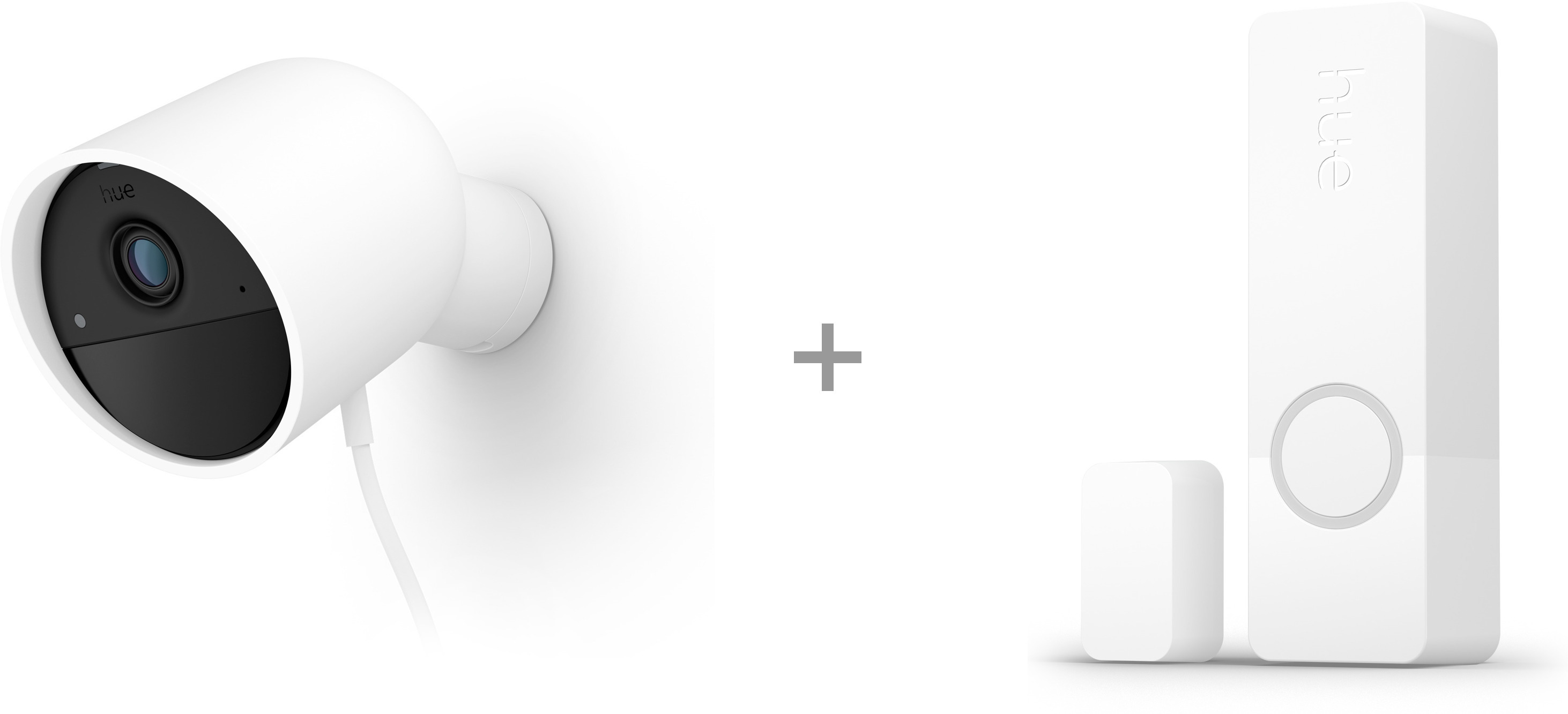 Philips Hue Secure valvontakamera, langallinen, valkoinen, + Hue Secure kosketustunnistin, tuotepaketti