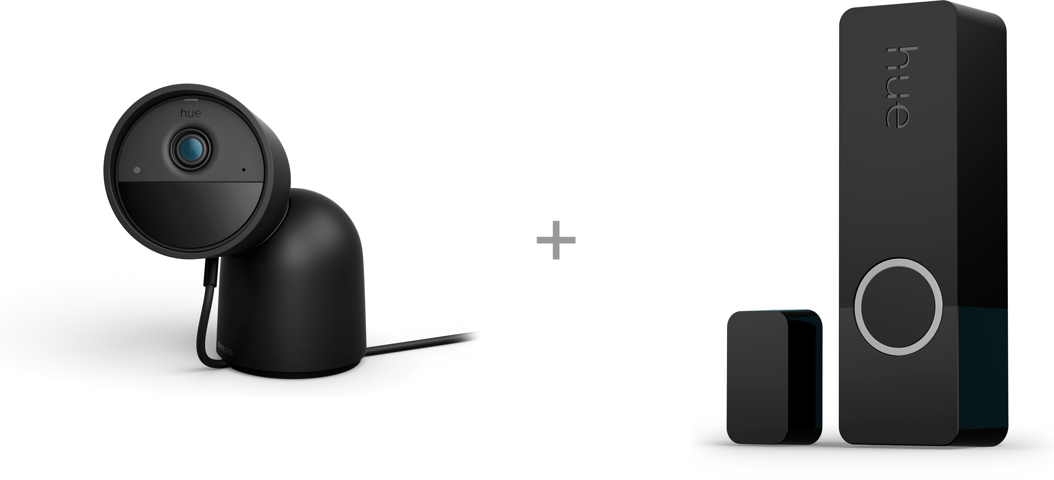 Philips Hue Secure valvontakamera, langallinen, pöytäteline, musta, + Hue Secure kosketustunnistin, tuotepaketti