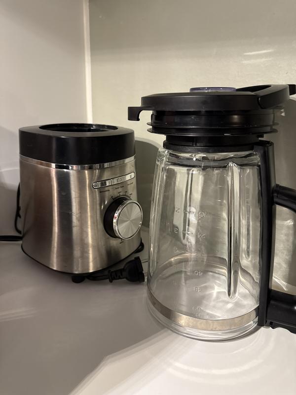 Suuri lasikannu. Hyvin mahtuu tavaraa. Tehot on piisannut. Ainoa miinus on kansi, mikä on hieman kömpelö. Kansi pitää olla hyvin paikoillaan ja lukittuna jotta konetta voi käyttää.