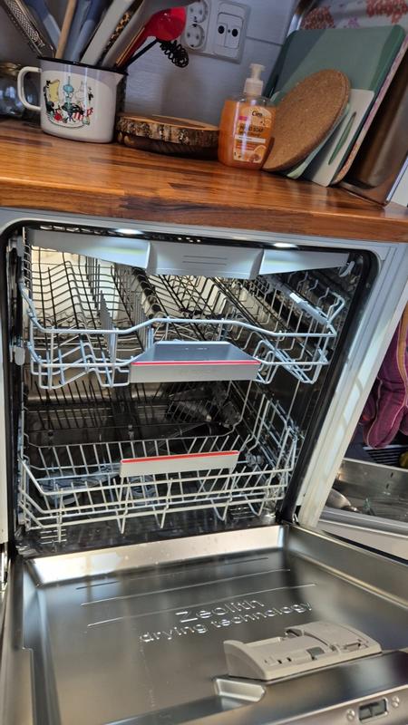 Ennestään tuttu merkki. Hyvät, näppärt säädöt keskitason orkeuden muutamiseksi. Ruokailuvälineille (veitset haarukat jne) ylhäällä oma tila, toimii hyvin. Hiljainen. Ja puhdasta ja kuivaa tulee.
