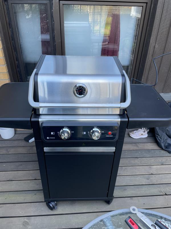 Aivan perinteisen kaasugrillin näköinen. Hyvä ostos! Kaksi selkeää säätökytkintä. Kuljetin kaverin kanssa spåralla kotiin. Kasaus sujui hyvin!