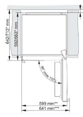 Ota huomioon laitteen oven avaamiseen tarvittava tila, jotta vetolaatikot ja