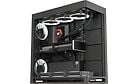 Nykyisten näytönohjainten ollessa järjettömän suuria, tähän koteloon oli aluksi hankala saada RTX 5080 liitettyä paikalleen. Ei siksi, että kotelon sisällä tila olisi loppunut, vaan kotelon laajennuspaikat ottivat kiinni ennen kuin näyttis oli paikallaan emolevyssä. Dispay Portin suojan poistamalla näyttiksen sai juuri ja juuri ujutettua paikalleen. Kotelon mukana tuleva näytönohjaimen tuki on myös jämäkän oloinen ja helposti säädettävissä.