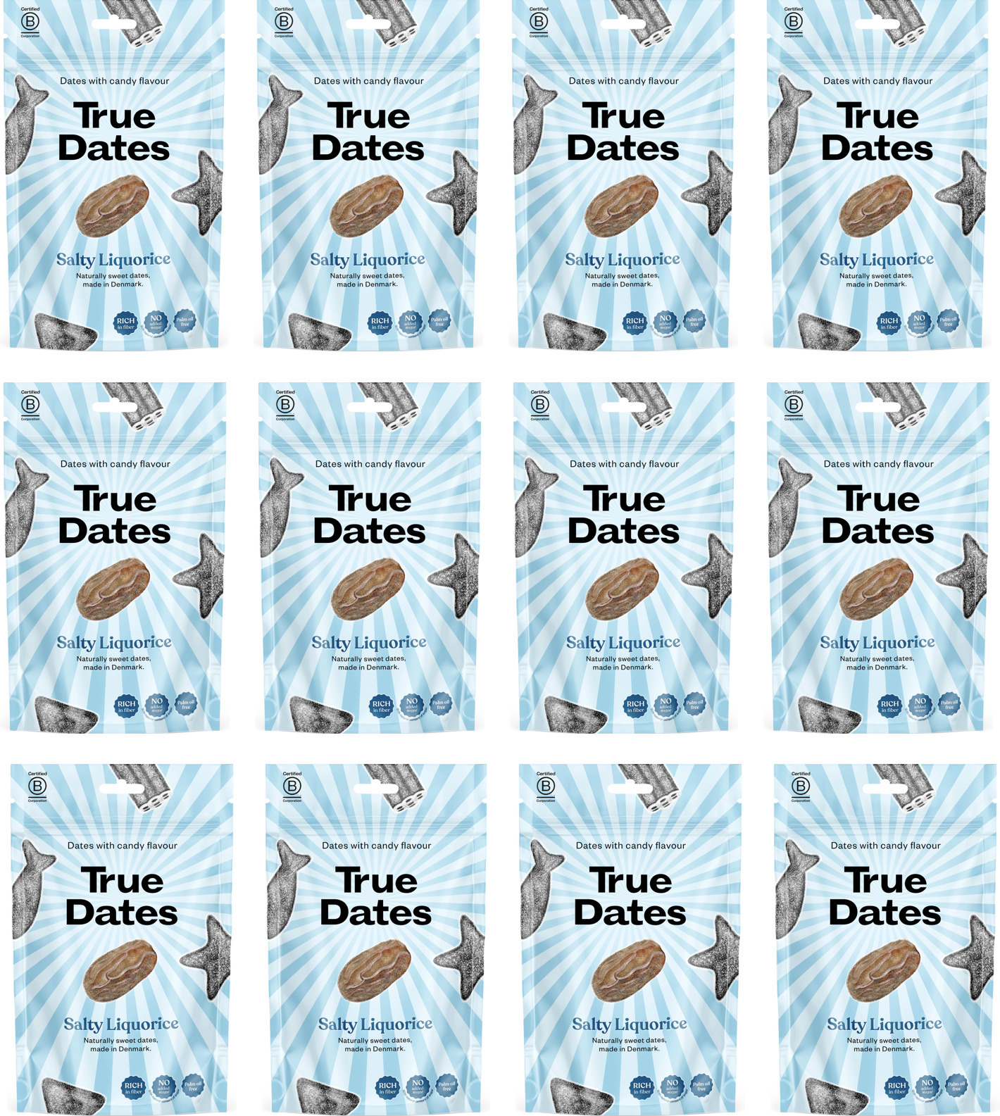 True Dates Salty Licorice -karkkitaateli, 100 g, 12-PACK