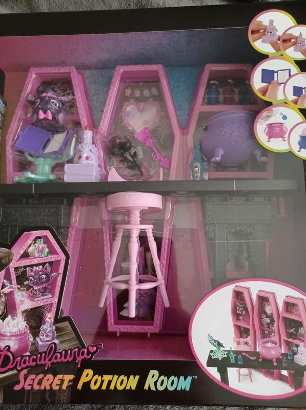 Ostin tämän lahjaksi kauempana asuvalle kummilapselle, eli en ole avannut pakettia. Netin kuvien ja arvostelujen perusteella tämä kuitenkin on loistava huonekalu- ja leikkisetti MH- ja Barbie-nukeille. Mukana tulee kaappeja, tuoli ja kasattava pöytä, sekä paljon pikkutavaraa kuten läpinäkyviä taikapulloja. On todella hienoa, että löysin tämän, koska välillä tuntuu siltä, että Suomesta ei oikein löydä nukeille leikkirekvisiittaa.