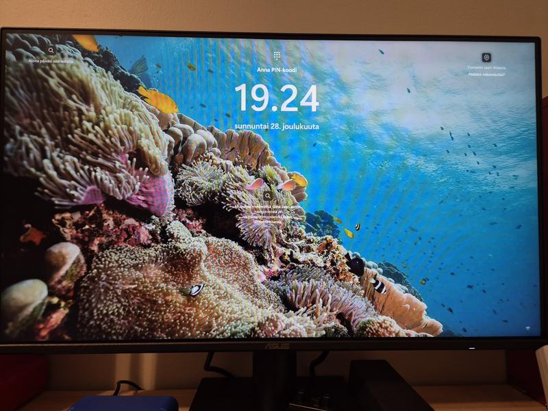 Hyvä perusnäyttö, helppo asentaa. Näkyy hyvin kirkkaassa tilassa ja sivulta katsottuna. Ainoa miinus siitä, että korkeutta ei voi säätää. Kallistus mahdollista. Mukaan tulleet kaapelit riittävän pitkiä.