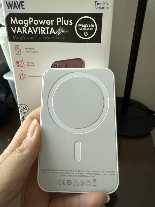 Hyvän kokoinen, helppo ottaa mukaan, kätevä käyttää puhelinta samalla kun tämä on kiinni. Kiinnittyy hyvin nahkaisen suojakuoren läpi, ei ole ollut ongelmia latauksessa tai toiminnassa muutenkaan. Mielestäni ei liian painava tms.